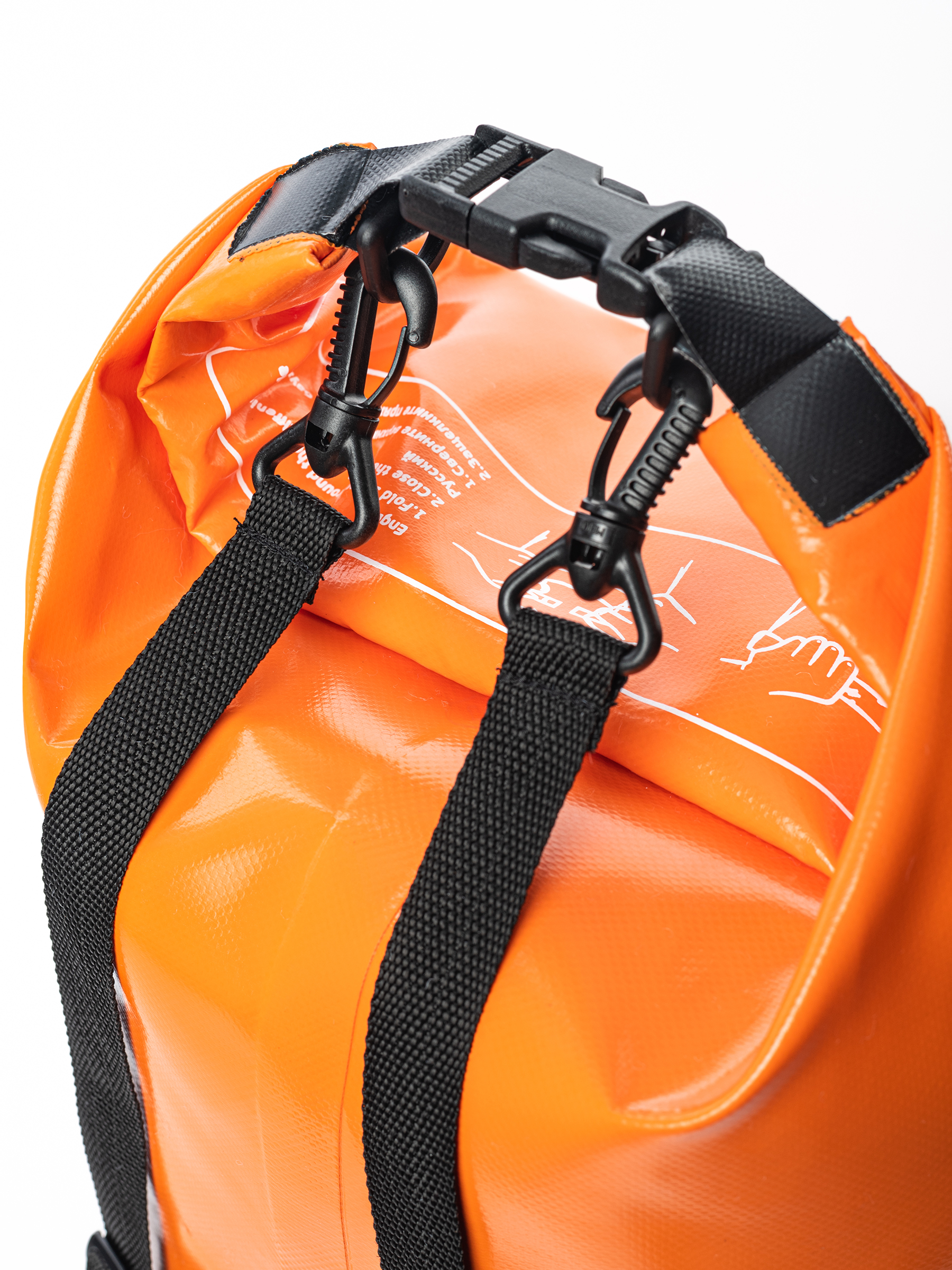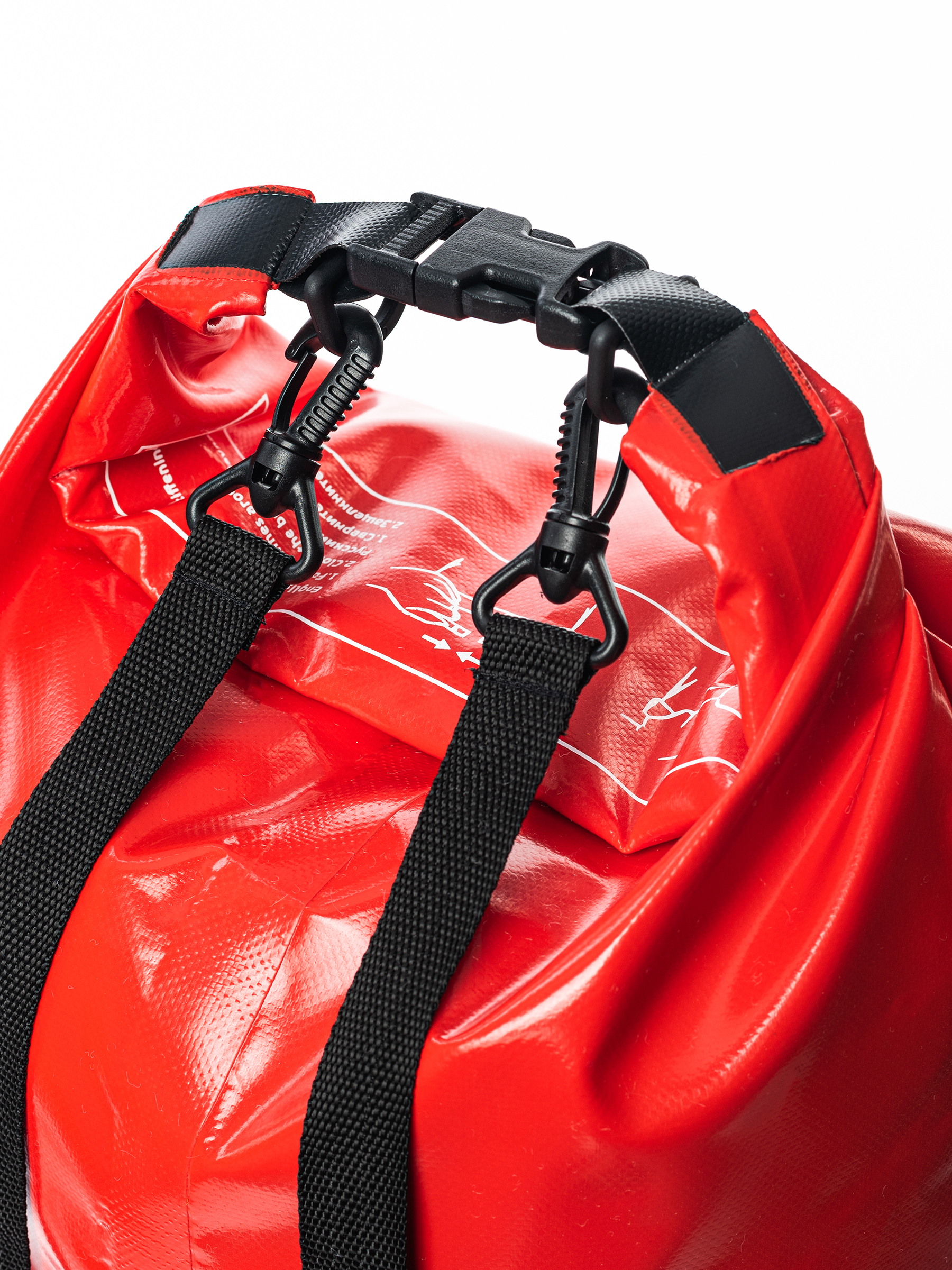 Герметичный рюкзак со съёмными плечевыми лямками. Закрывается путём сворачивания верха на 3-4 оборота с фиксацией на застёжку.